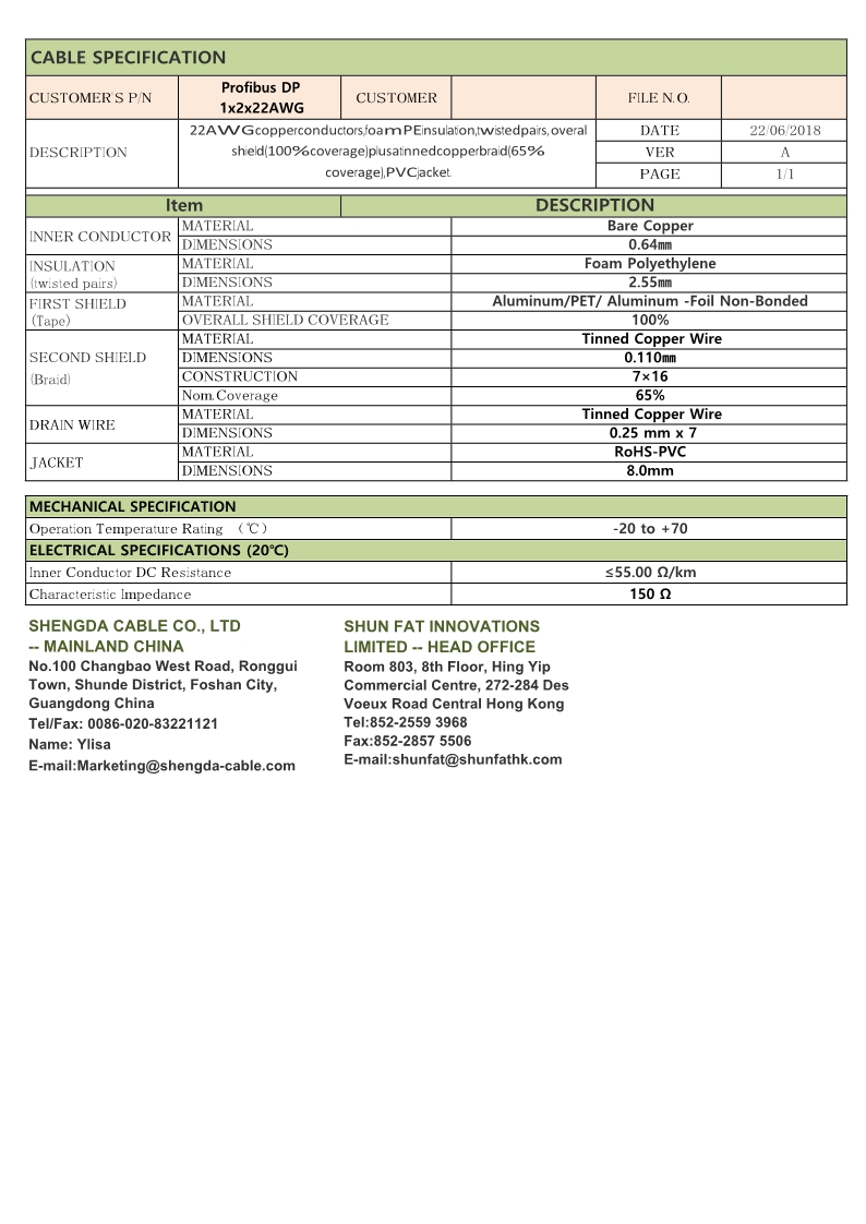 –Tinned copper braid shielded